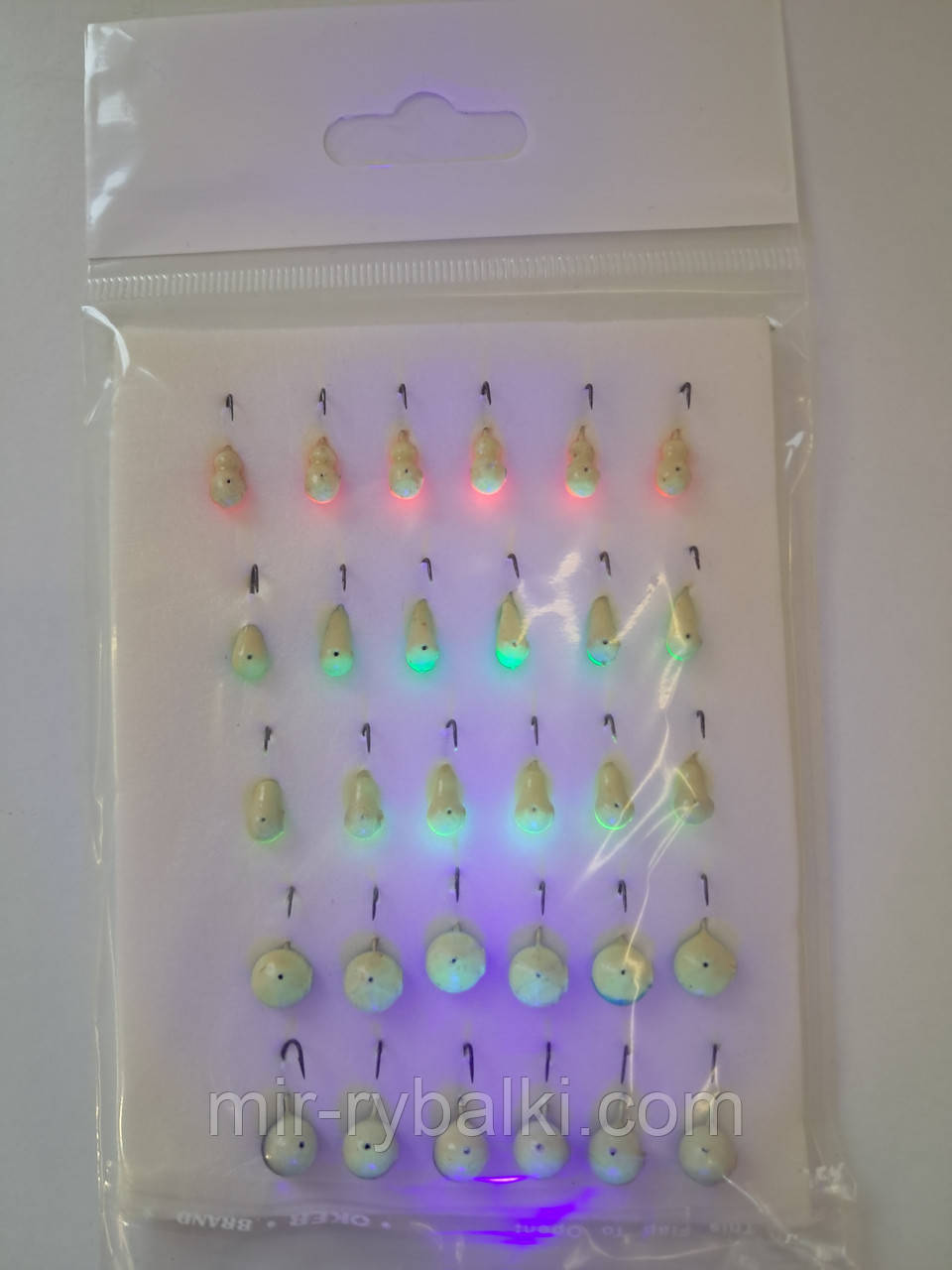 одна сторона фосфорна (біла), на звороті кольорова (рожева, салатова та чорна)